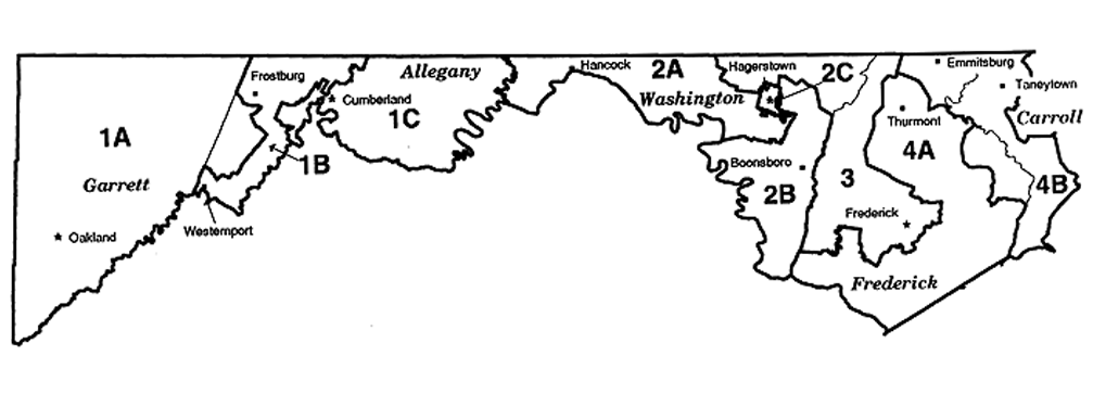Map of Maryland Legislative Election Districts (Western Maryland: Garrett, Allegany & Washington counties, & parts of Frederick & Carroll counties),